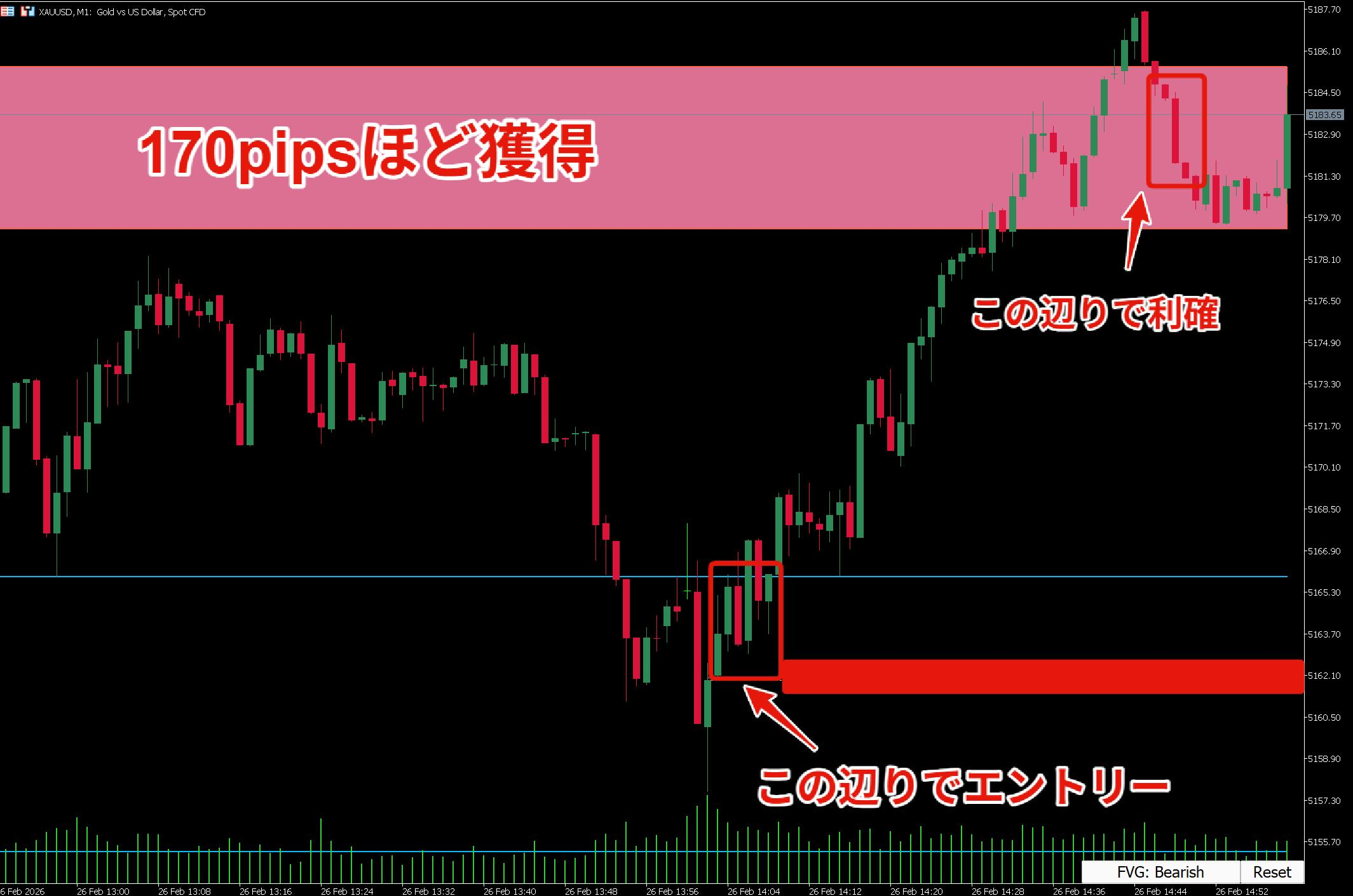- 急激な値動きによって生じた価格の不均衡(FVG:フェアバリューギャップ)を埋めること