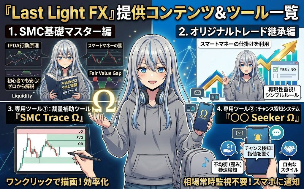 SMCの最大の魅力は、このLQ(損切り)やFVG(不均衡)といった「相場の本質」を、誰が見ても同じ答えになる明確な条件で定義していることにあります。